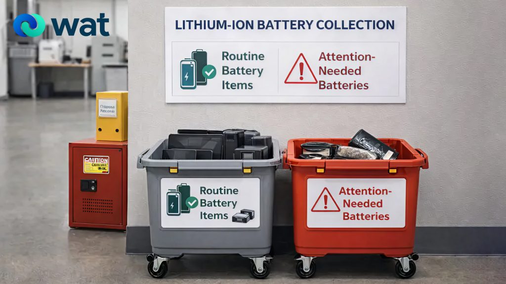 Not all battery waste is equal. A structured workplace process typically separates items into two lanes: